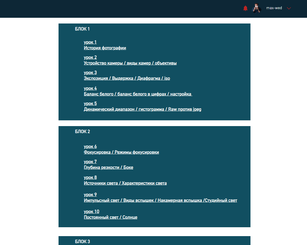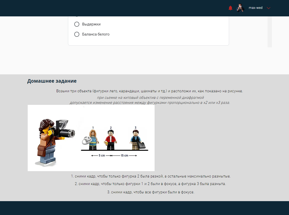 •  Максим, добрый день. Спасибо за интересные уроки! Особенно за задания, тесты и др. Я для себя почерпнула многое. Поняла, что делала не совсем правильно. Теперь вижу разницу и довольна результатом. Буду советовать ваш курс начинающим фотографам. Он действительно стоящий! Вам удачи!